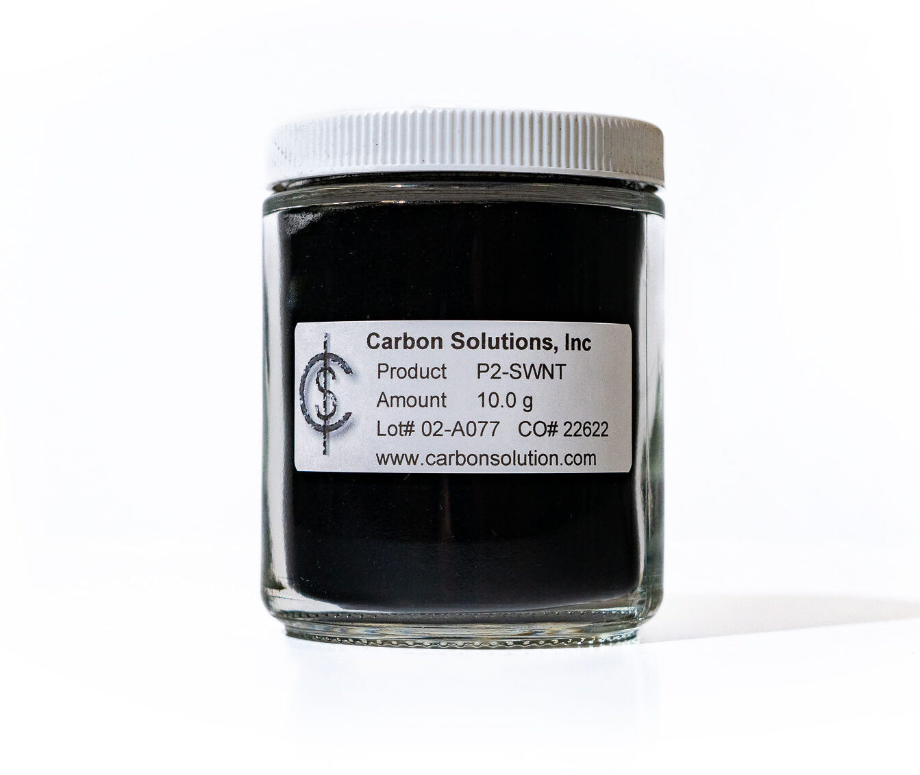 P2-SWNT: AP-SWNTs are purified by air oxidation and subsequently treated to remove the catalyst. The purified material closely approximates the pristine state with low functionality and low chemical doping. Dispersibility is similar to that of the AP-SWNTs.